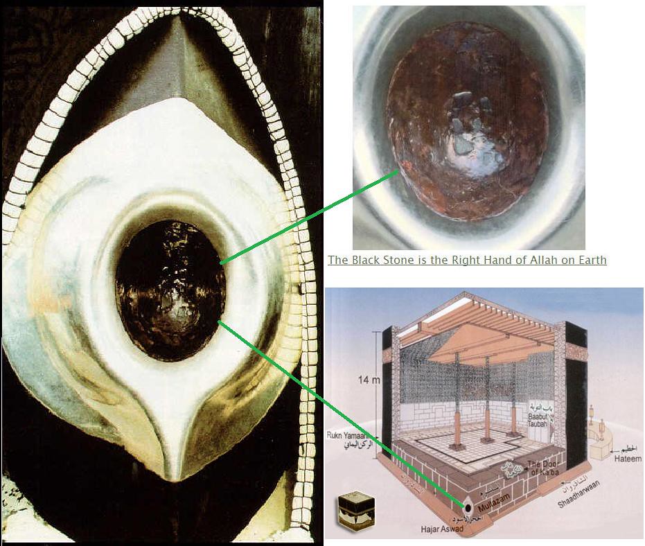 Secondo punto, la Pietra Nera è il meteorite che segna l’inizio della circumambulazione attorno alla Ka’aba in ricordo dell’adorazione della Dea Madre. La Pietra Nera della Mecca “fu adorata come un’immagine della Dea fino alla nascita dell’Islam” (Baring and Cashford, p. 396).