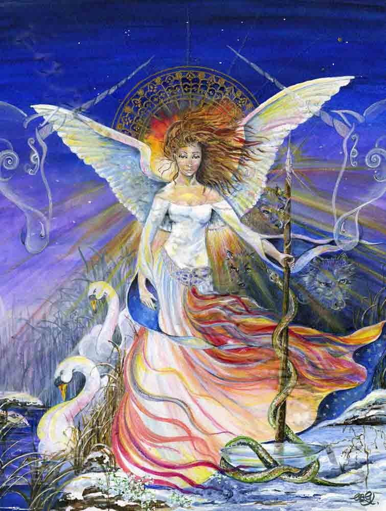 Brigit, figlia del Grande Dio Dagda e controparte celtica di Athena-Minerva, è la conservatrice della tradizione, perché per gli antichi Celti la poesia era un’arte sacra che trascendeva la semplice composizione di versi e diventava magia, rito, personificazione della memoria ancestrale delle popolazioni.