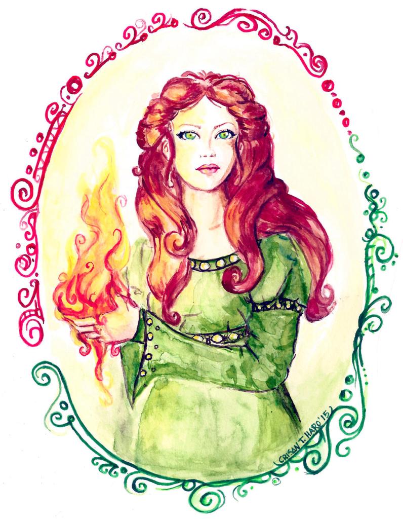 Nell’Europa celtica era infatti onorata Brigid/Brigit (conosciuta anche come Brighid o Brigantia), dea del triplice fuoco; infatti era la patrona dei fabbri, dei poeti e dei guaritori. Il suo nome deriva dalla radice “breo” (fuoco): il fuoco della fucina si univa a quello dell’ispirazione artistica e dell’energia guaritrice.