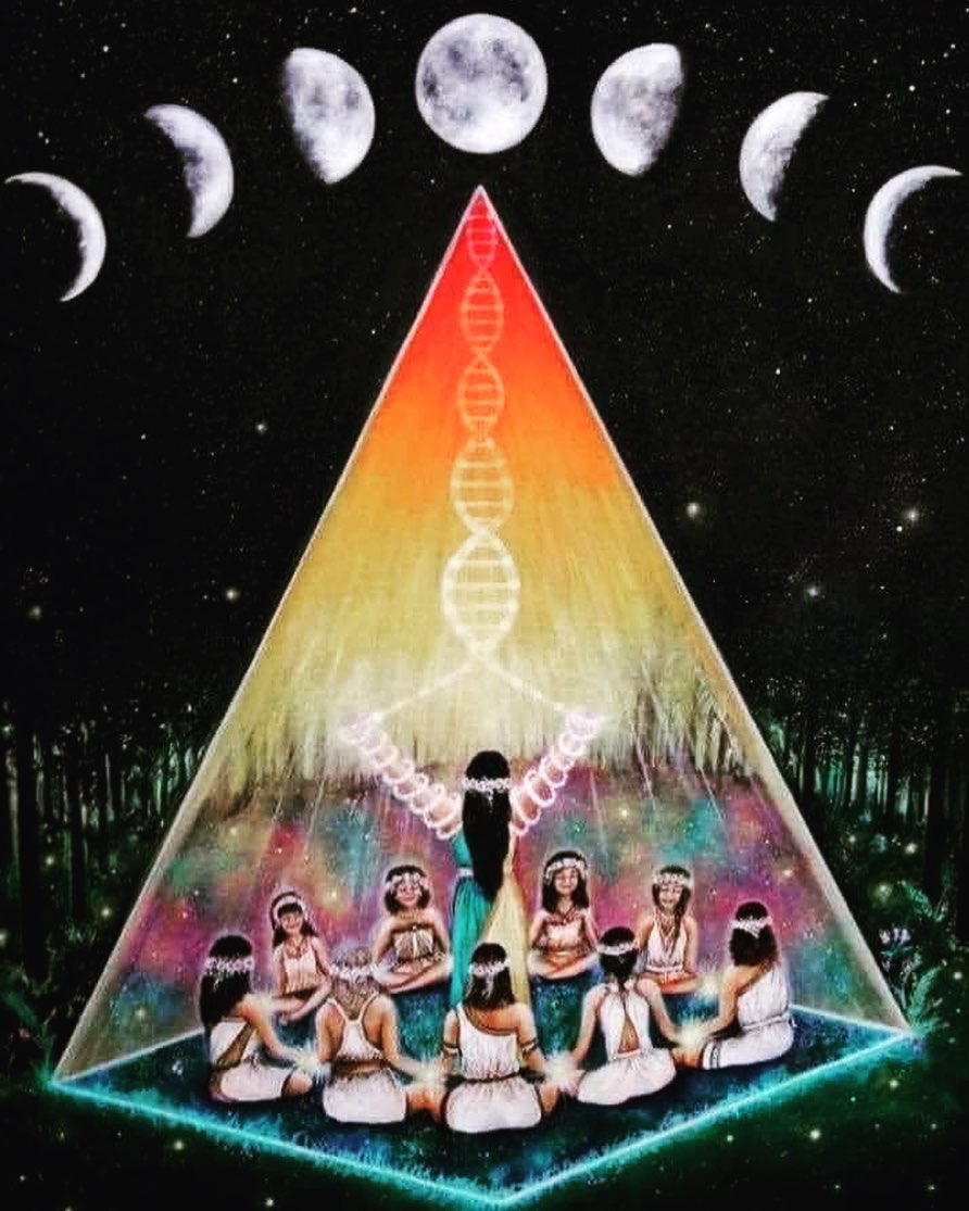 Proprio come le donne che oggi vivono assieme nei convitti studenteschi femminili o in altre situazioni di vita comunitaria, sincronizzano il loro ciclo mestruale e finiscono con l’avere le mestruazioni nello stesso periodo, allo stesso modo l’energia kundalini è contagiosa nei cerchi di donne. Nei tempi antichi le comunità sembravano trarre vantaggio da questo fatto e santificavano questo fenomeno, mettendo il ciclo del sangue femminile al centro della loro organizzazione sociale.