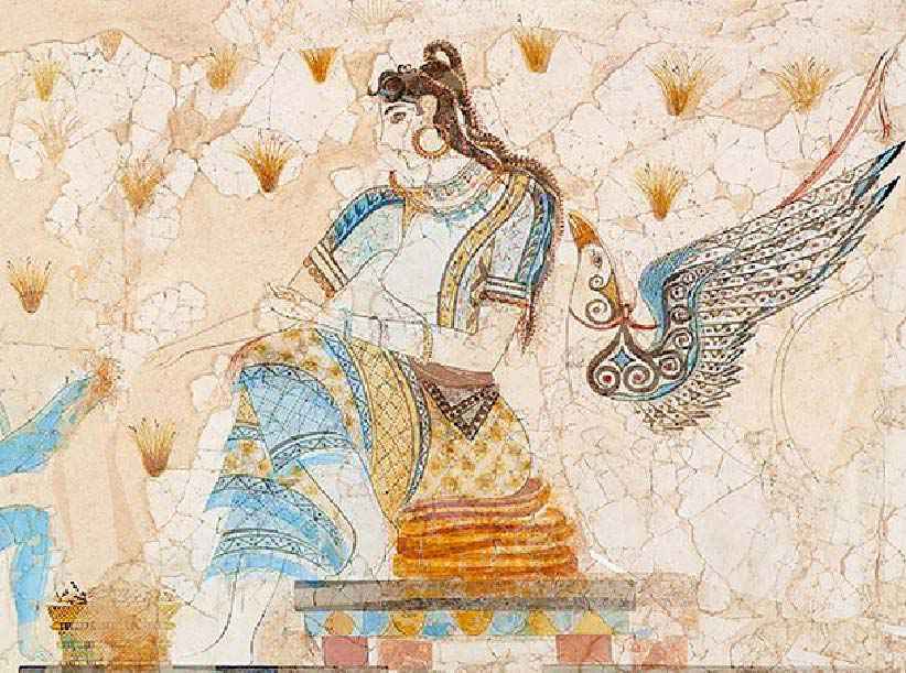 Gli archeologi greci hanno cominciato a descrivere i siti delle loro isole – come quelli a Creta e a Santorini – come dei “centri cerimoniali” piuttosto che come “città” o “palazzi reali”, come prima si credeva che fossero. Sempre più indizi ci portano a considerare questi siti come luoghi di devozione e pellegrinaggio – isole santuario – presieduti da sacerdotesse le cui importanti funzioni yogiche sono raffigurate nelle molte statuette di marmo, pietra e bronzo e nei raffinati affreschi murali che lì sono stati ritrovati. Furono costruite grandi piattaforme di pietra ai lati dei cimiteri (dove le donne venivano sepolte con un corredo funerario più ricco rispetto a quello degli uomini, e che includeva centinaia delle caratteristiche statuine di marmo) (Getz-Preziosi, 1987, 15).