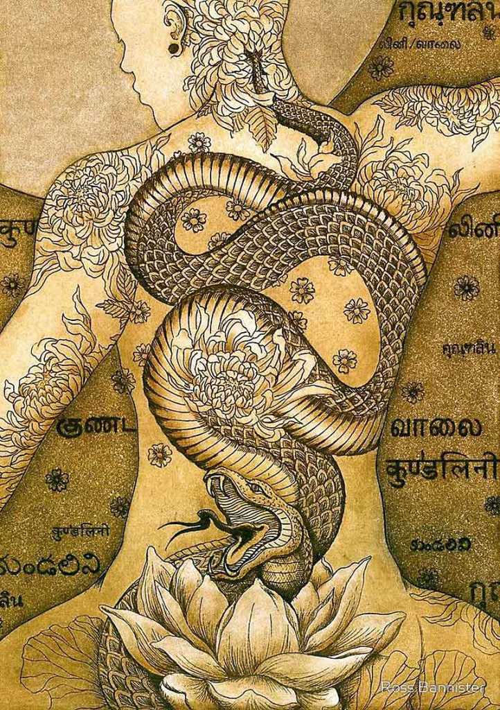 Questa esplicita percezione del potere del serpente come femminile (Kundalini Shakti) ci rimanda indietro ad una antica religione estatica a diffusione planetaria e officiata dalle donne. L’indiana “Buddhi Nagin” è dipinta come un vetusto serpente femmina, e l’antica Dea creatrice cinese Nu Kua era metà serpente e metà donna, proprio come un’immagine dipinta nella stessa epoca dalle donne di Mithila, nel nord dell’India (Johnson, 172).