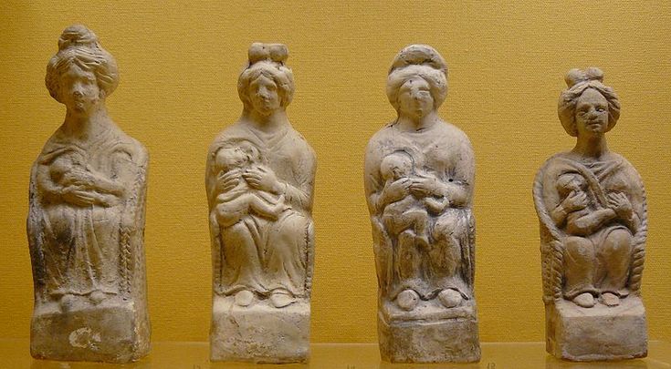 Le loro acconciature e i loro vestiti indicavano lo stato di “Matrona”. Ovvero la raffigurazione a cui anche le moderne tradizione ci hanno abituati: Maiden, Mother and Crone – Fanciulla, Madre e Anziana, dove la centrale , ovvero la donna con un età intermedia, aveva i capelli sciolti e portava appunto il cesto o il bambino.