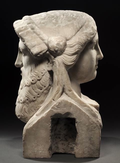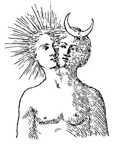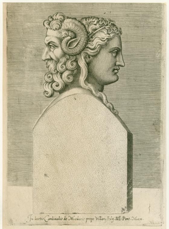 A volte Giano ha un volto virile, anziano e barbuto e un volto femmineo, giovane e bello in relazione al primitivo significato di simbolo del Sole e della Luna espresso dalla coppia Janus-Jana o Diano-Diana, con senso analogo a quello della coppia divina di Giove e Giunone.