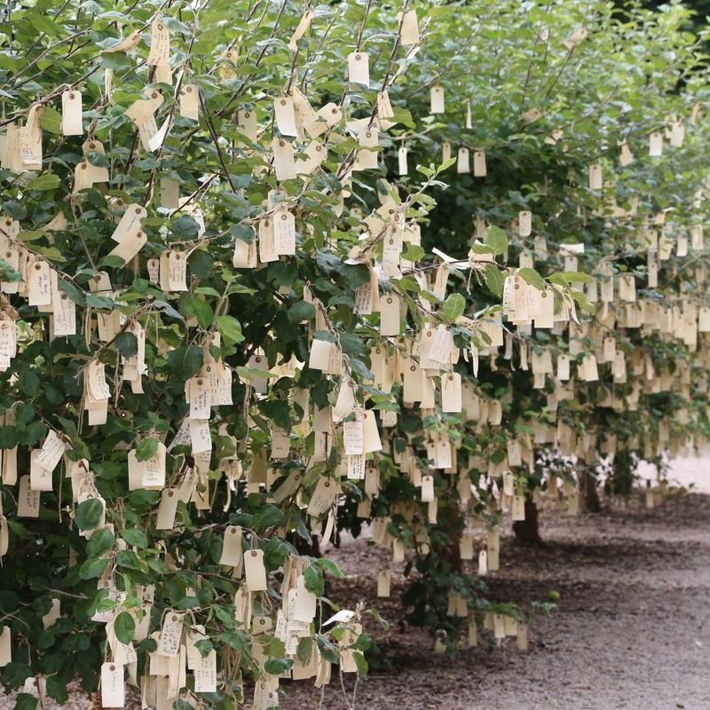 Da bambina in Giappone, andavo in un tempio e scrivevo un desiderio su un pezzo di carta sottile e lo legavo attorno al ramo di un albero (Omikuji). Gli alberi nei cortili dei templi erano sempre pieni di nodi di desiderio delle persone, che sembravano fiori bianchi o rossi che sbocciavano da lontano..Tutte le mie opere sono una forma di desiderio..