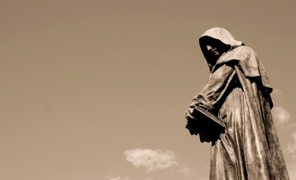 Il suo pensiero, la sua idea libera: l’infinito, inteso come un universo infinito e composto da infiniti mondi, realizzato da un Dio altrettanto infinito, da amare infinitamente. Per le sue teorie, fu condannato e bruciato sul rogo dall’inquisizione di Roma.
