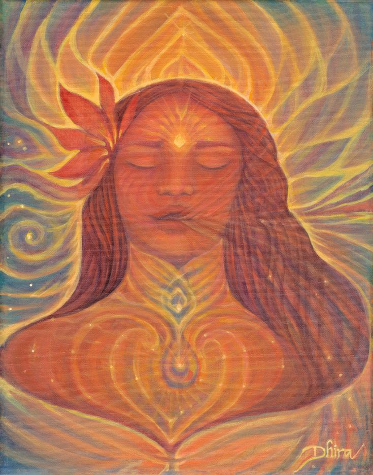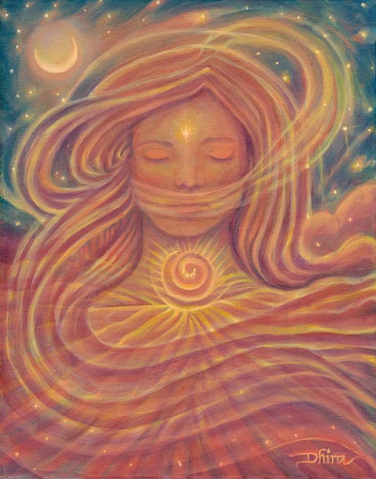 Con il sottile intelletto, si può anche conoscere il secondo livello d’intervento, che è nella gola. Lì, le parole hanno preso forma, ma non sono ancora emerse, non sono ancora state emesse come suono all’ esterno. Questo livello è chiamato Madhyamah e corrisponde al corpo sottile.